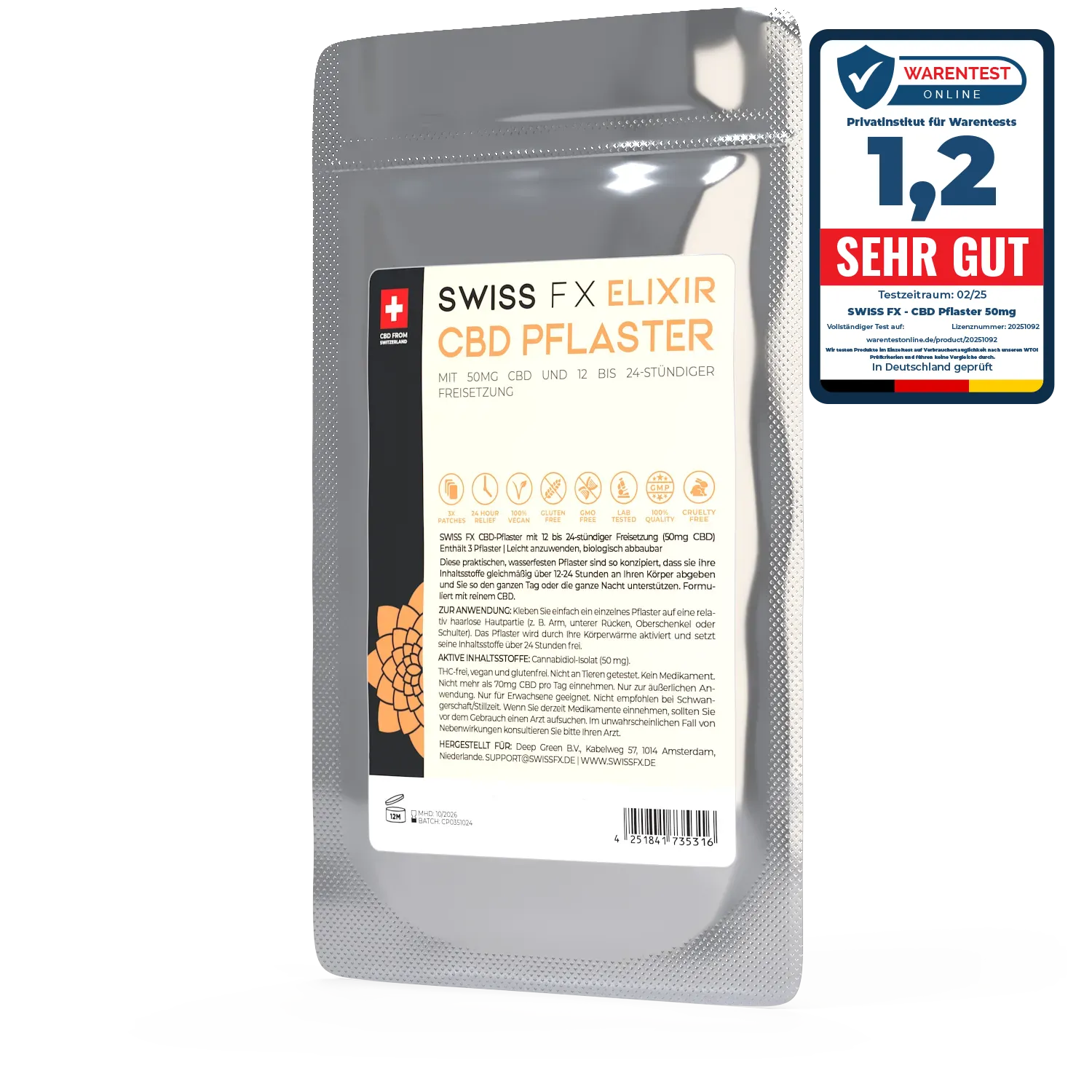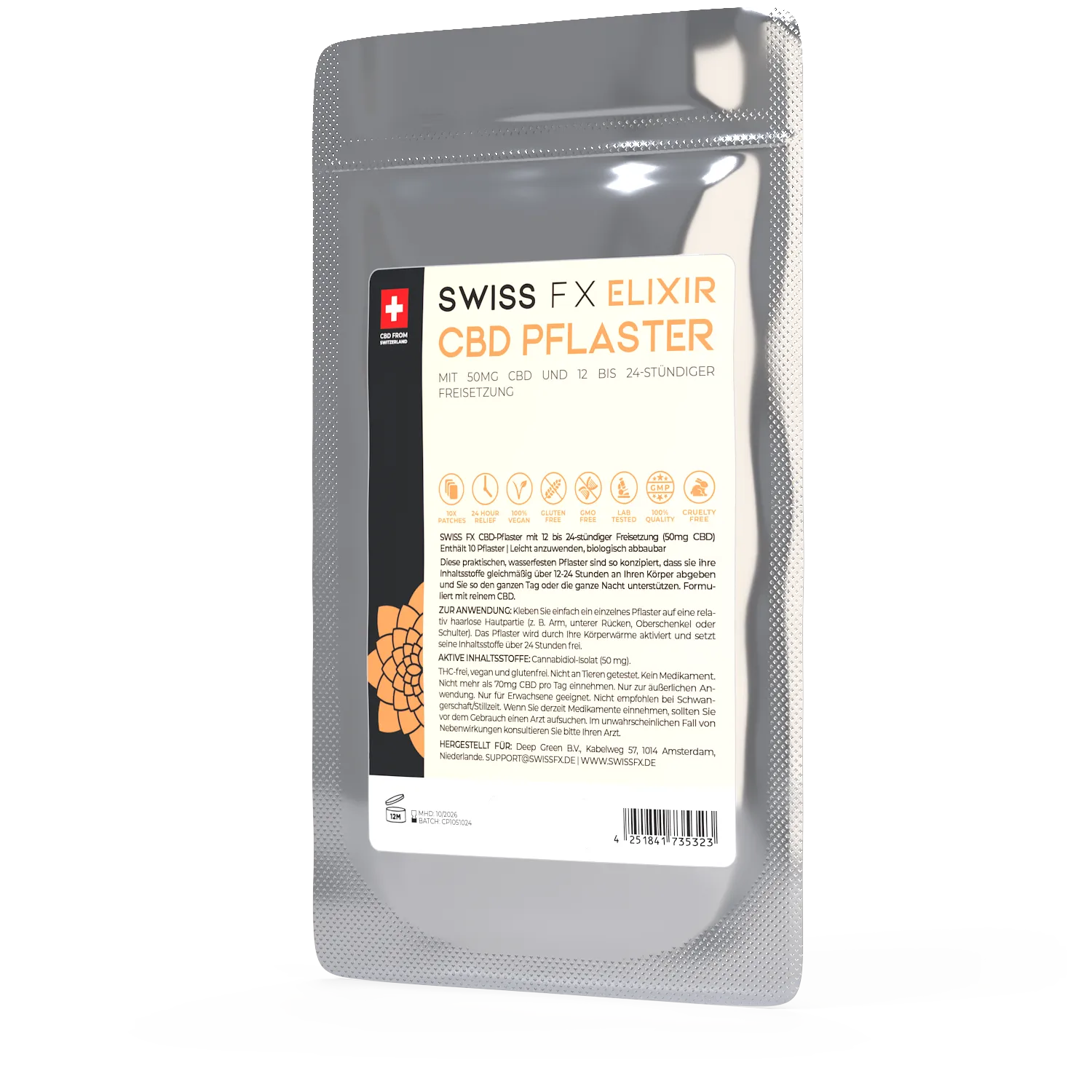 THC-frei, wasserfest & biologisch abbaubar. Gibt 50 mg CBD gleichmäßig über 12 h ab.
