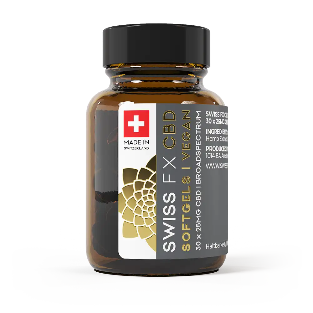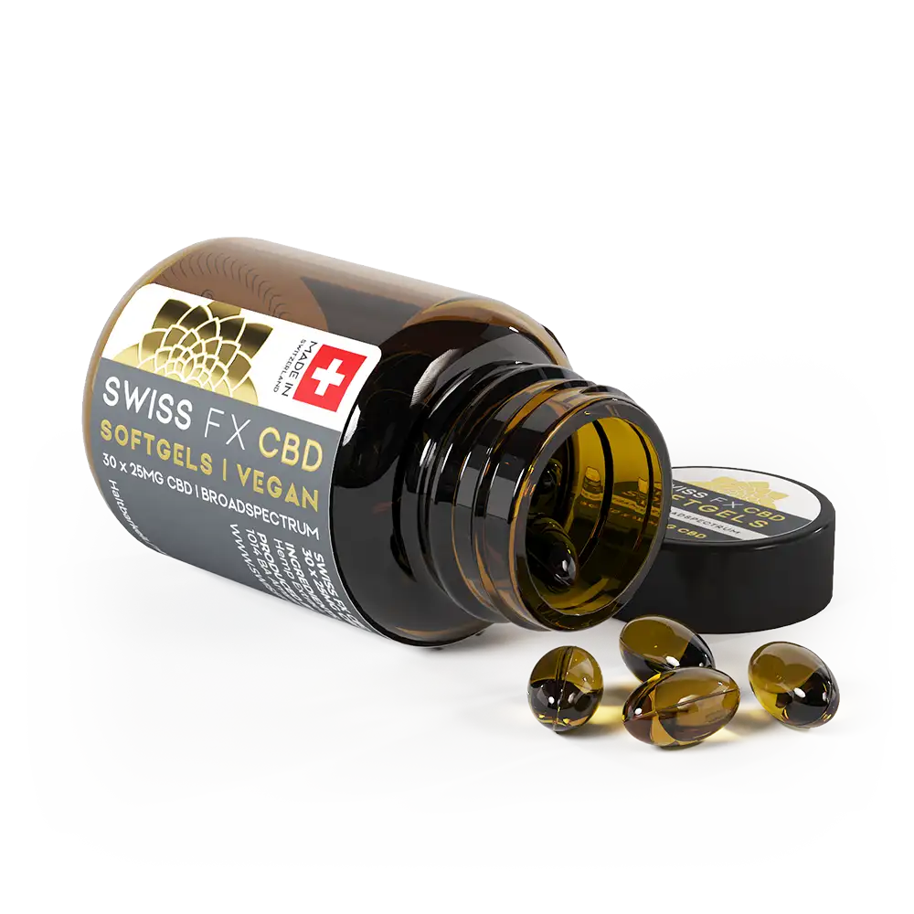 30 Softgelkapseln mit 25 mg oder 50 mg CBD.