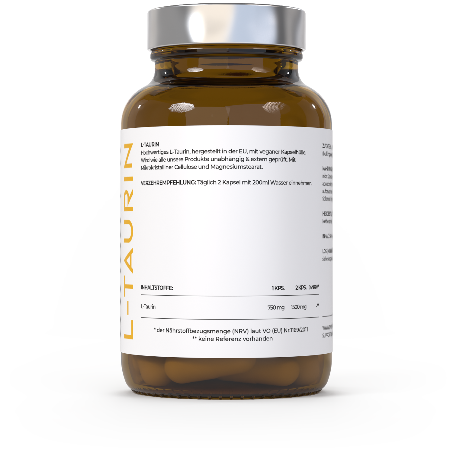 L-Taurin – Kapseln – 60 Kapseln (1500 mg/Tag)