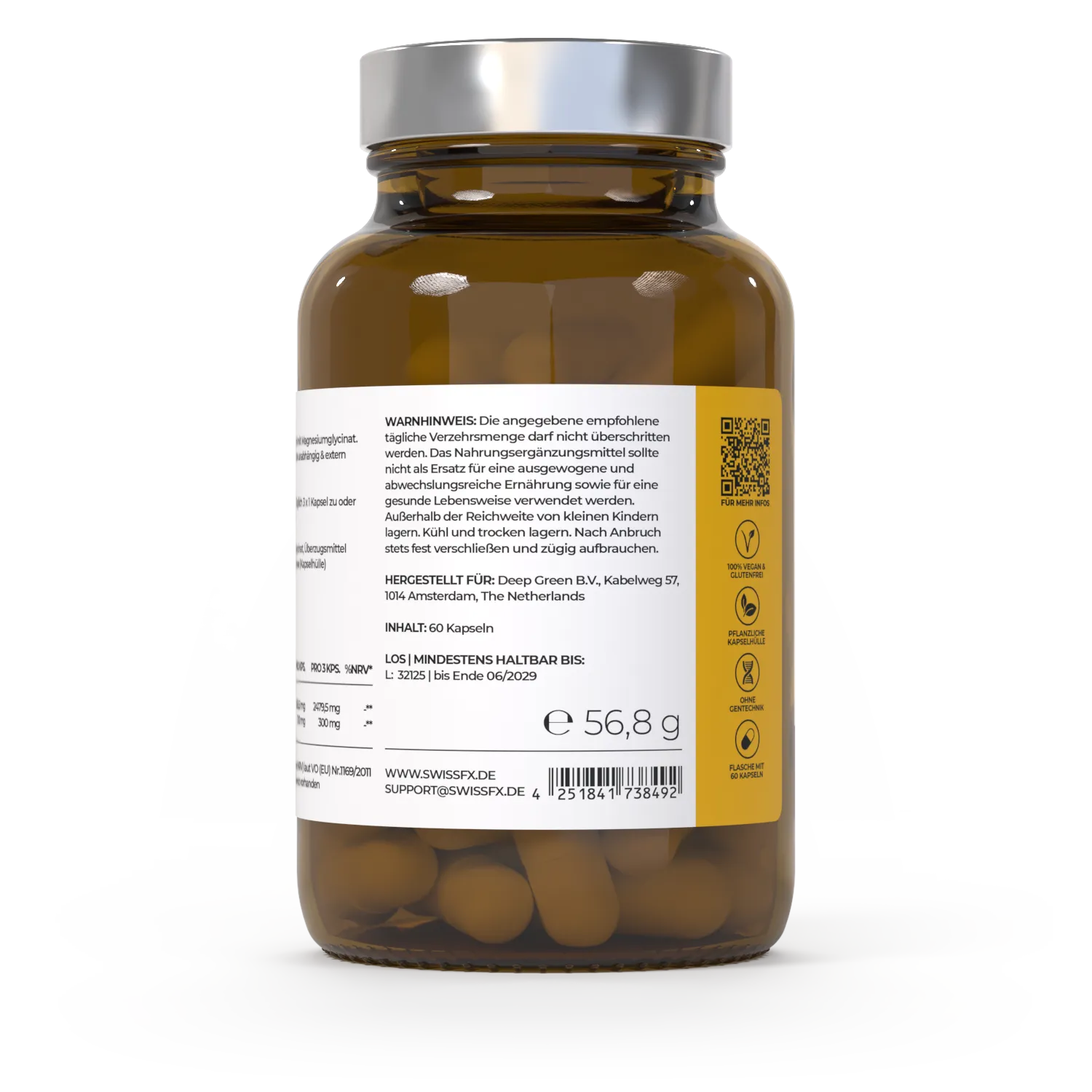 Unterstützt Muskelentspannung, Nervenfunktion und Schlafqualität; hohe Bioverfügbarkeit.