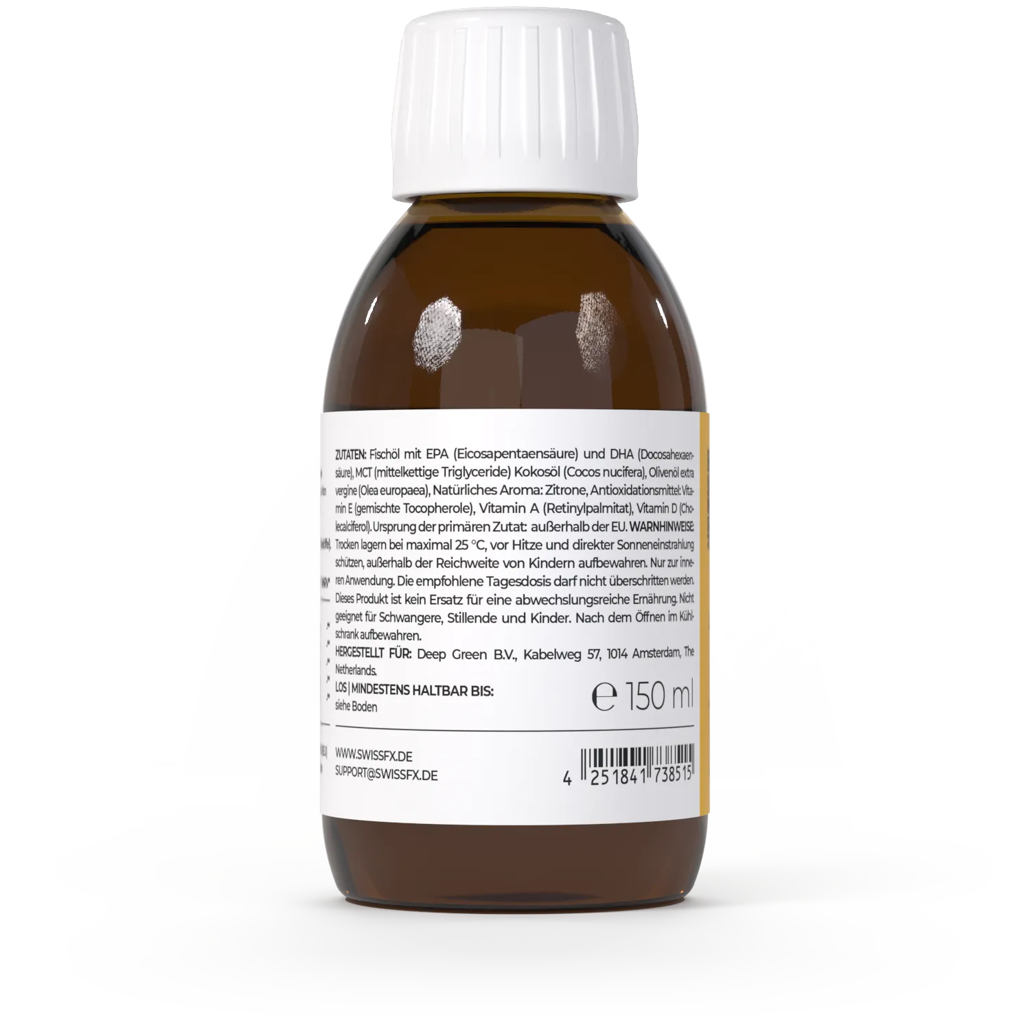 Mit DHA, EPA, DPA in natürlicher Triglyceridform; frischer Zitronengeschmack, ohne fischigen Nachgeschmack.